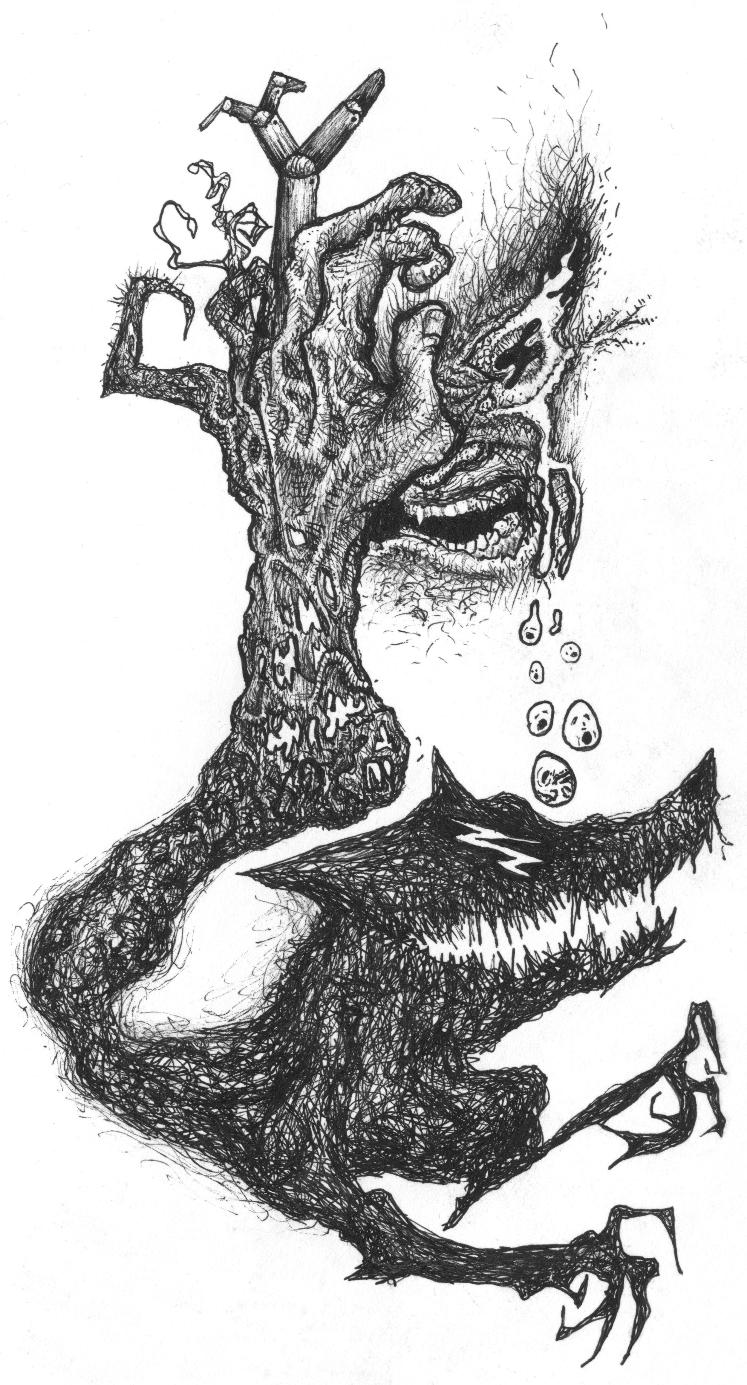 Struggler (Tribute to Kentaro Miura), ink on paper, 2021