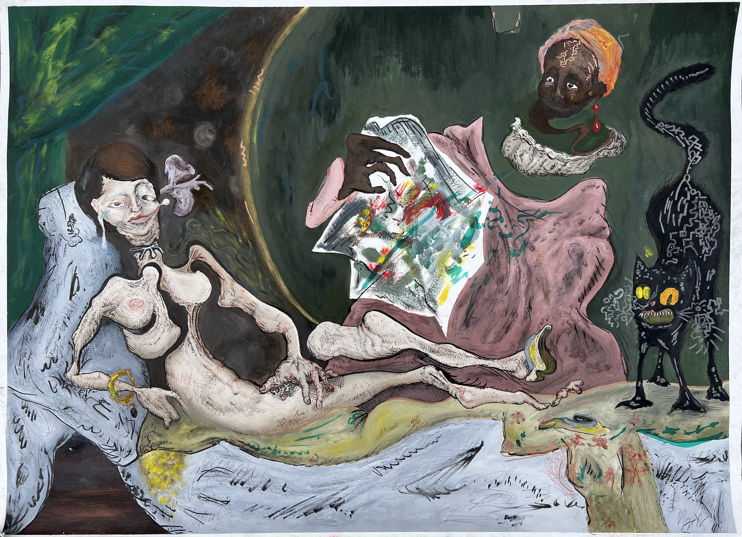 Olympia’s Disintegration, oil and ink on paper, 2020